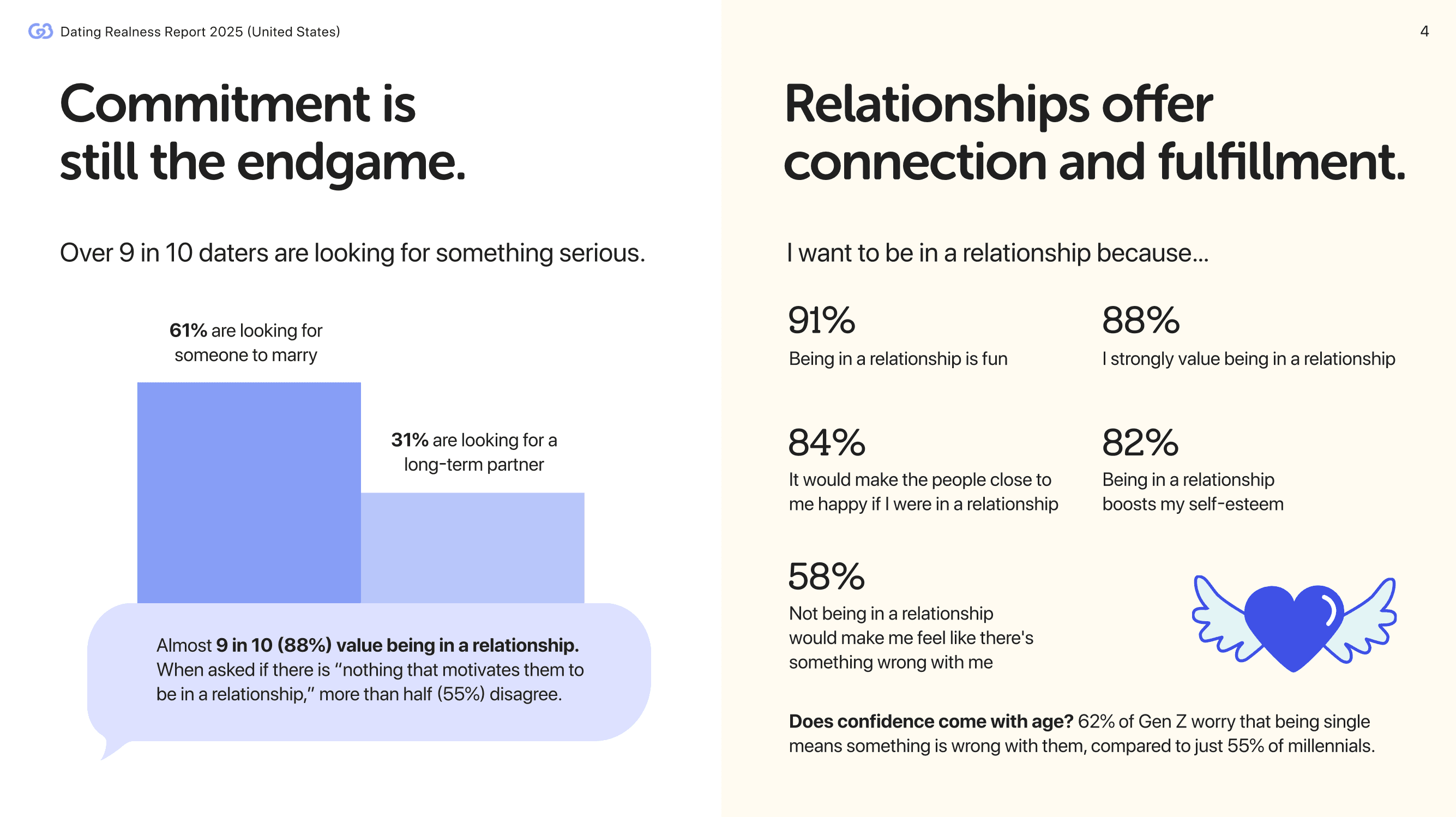 CMB Dating Realness Report 2025 is CMB’s flagship thought-leadership platform that explores the most current and real conversations around dating - daters’ concerns, aspirations, shifting norms amid changing environments across the key markets that we operate in. The survey wave was conducted in partnership with YouGov in November 2025 with N=1048 US respondents aged 21-35, comprising working professionals who are either actively looking for a relationship or not actively searching but open to one.